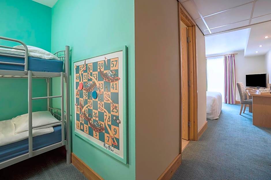 Each room has a designated children’s area which contains small bunk beds and an entertainment area to keep younger members of the family occupied. The adult section of the room features all the amenities of a regular double room.